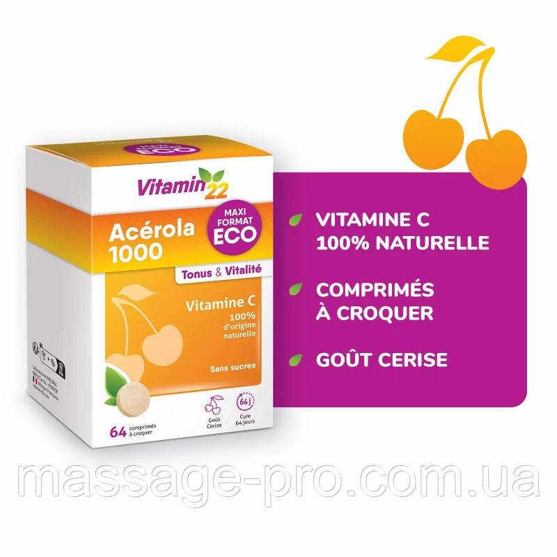 Вітаміни жувальні для дорослих Vitamin'22 Acerola 1000 maxi format eco 64 шт Мультивітамінний комплекс