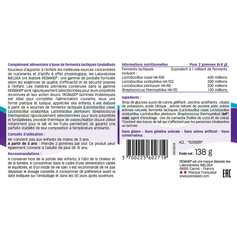 Вітаміни жувальні з пробіотиками Pediakid Gommes Probiotiques від 3 років 60 шт Дитячі вітаміни жувальні